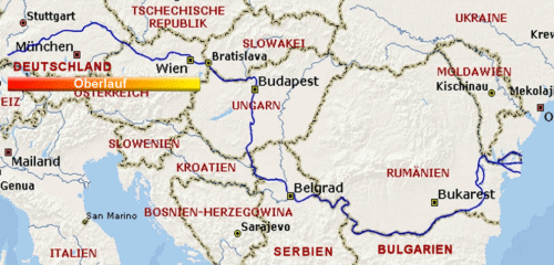 Über 687 km legt die Donau Die nächsten 350 km legt die Donau in Österreich zurück, eine faszinierende und abwechslungsreiche Landschaft. Es beginnt mit der Schlögener Schlinge. Hier macht die Donau eine Kehrtwendung von 180 Grad. Nun folgt das landschaftlich schönste Gebiet des Oberlaufes, die Wachau. Die Donau durchfließt zwei geschichtsträchtige Städte: Linz und die Landeshauptstadt Wien. Nach 970 Kilometer endet der Oberlauf der Donau an der Hainburger Pforte. Am Felsen von Devin, dem früheren Theben, mündet die March in die Donau. |